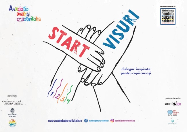 „Start visuri. Dialoguri inspirate pentru copii curiosi” este proiectul care doreste sa inspire tanara generatie prin vocile unor personalitati din viata cultural-sportiva romaneasca. Peste 240 de copii se vor intalni, de-a lungul a 6 sesiuni, cu scriitori, ilustratori si sportivi de performanta pentru inspiratie si conectare. Impletim lectura cu ilustratia si performanta din sport pentru a contura o educatie alternativa.